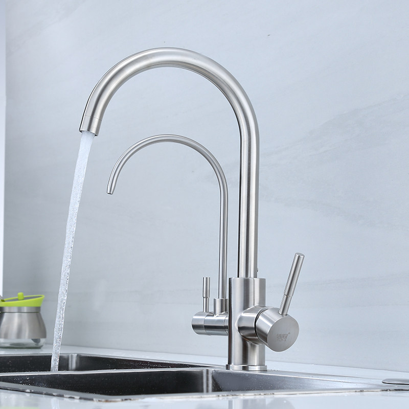 Kitchen hot and cold water faucet 304 three-in-one vegetable basin household direct drinking water purifier two-in-one splash-proof sink