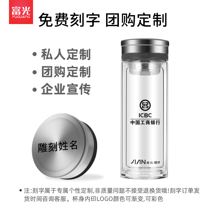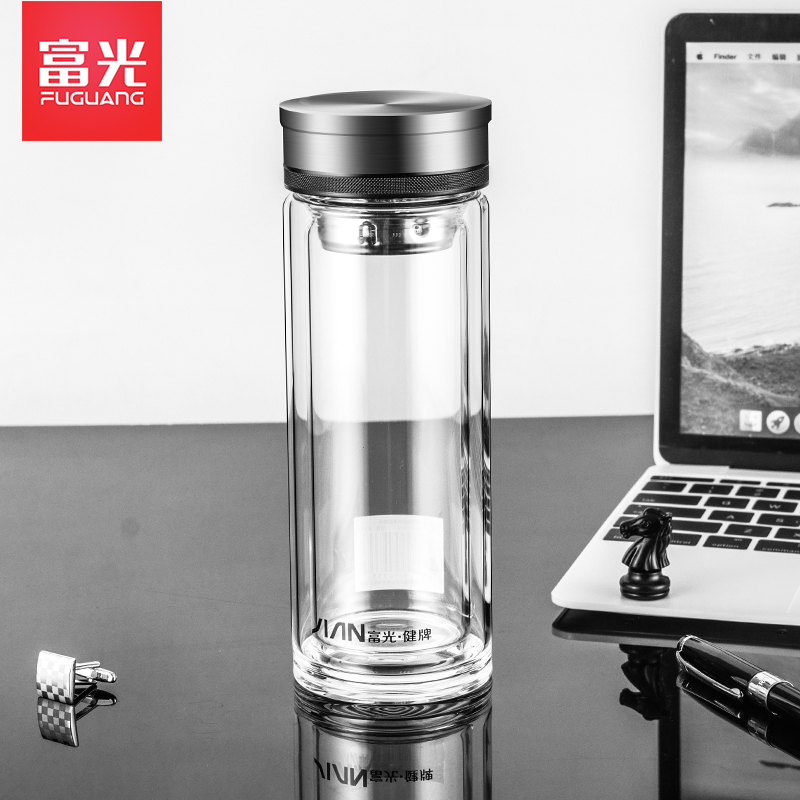 Rich light double glazed cup portable male and female large capacity office home heat-resistant tea water separation tea water cup