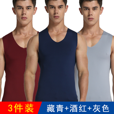 Summer three pieces Ice Silk seamless wide shoulder vest male youth slim sleeveless modal quick dry V collar base shirt