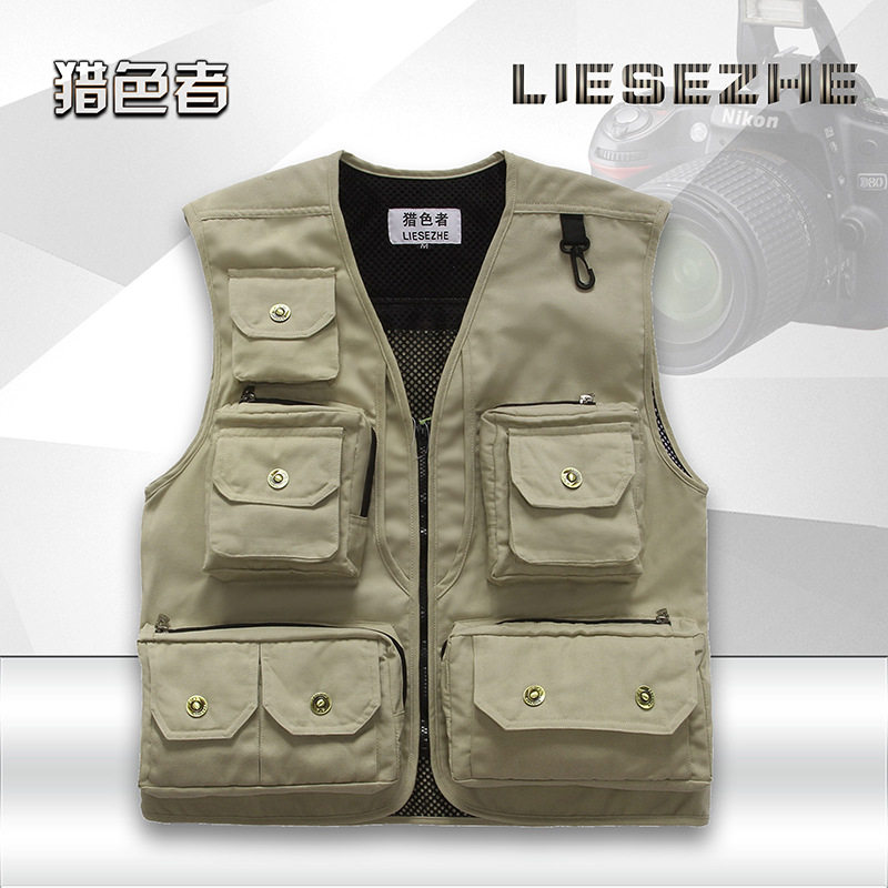 Professional Fine Canvas Hunter Photo Vest Solid Multiple Pockets Waistcoat Cameraman Group Purchase reporter Machiu