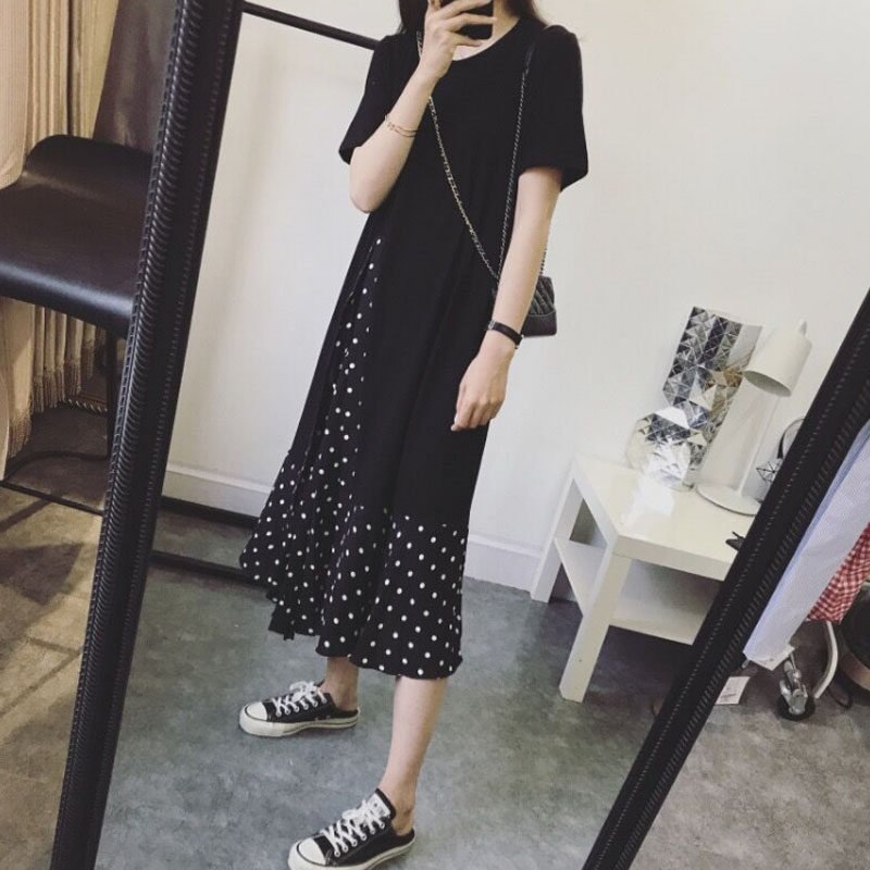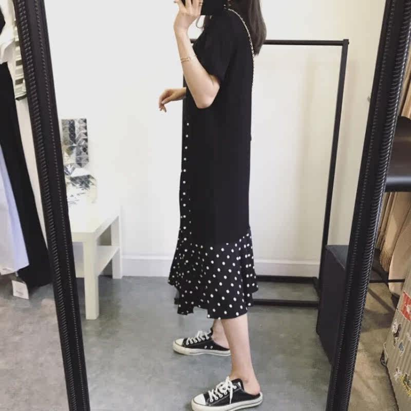 Gats up for code summer new pop women's dress big code display slim wave points irregular dress and skirt foreign air cover-Taobao