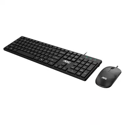 AOC wired keyboard and mouse set Office home ultra-thin USB desktop computer game LOL mouse key set accessories waterproof mute health plate business office men and women unlimited thin and thin keyboard and mouse KM401