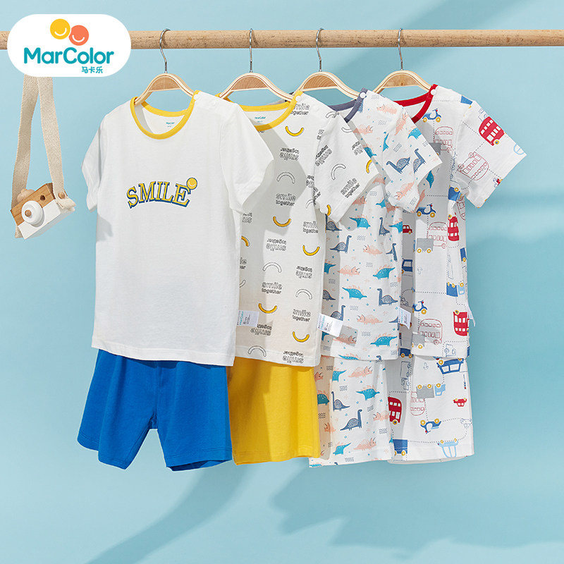 Maca Le children's clothing 2020 summer new men and women pure cotton casual neutral short-sleeved pajamas shorts home clothes set