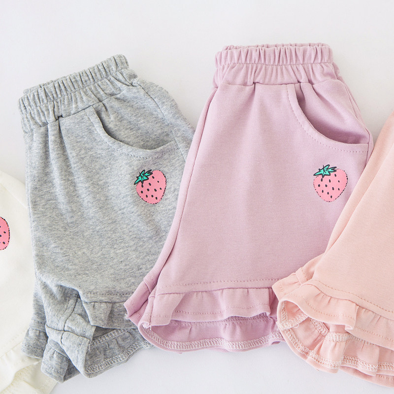 2021 Summer girls cotton shorts Strawberry fungus side hot pants Casual pants Small children baby leggings