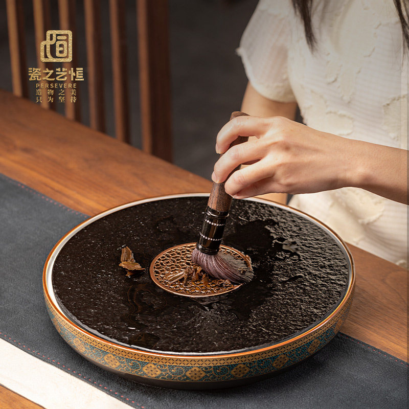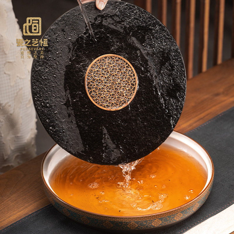 Ujinshi Tea Tray Household Water Storage Tea Table Simple Kung Fu Tea Tray Ceramic Dry BrewIng Table Round Stone Tea Sea