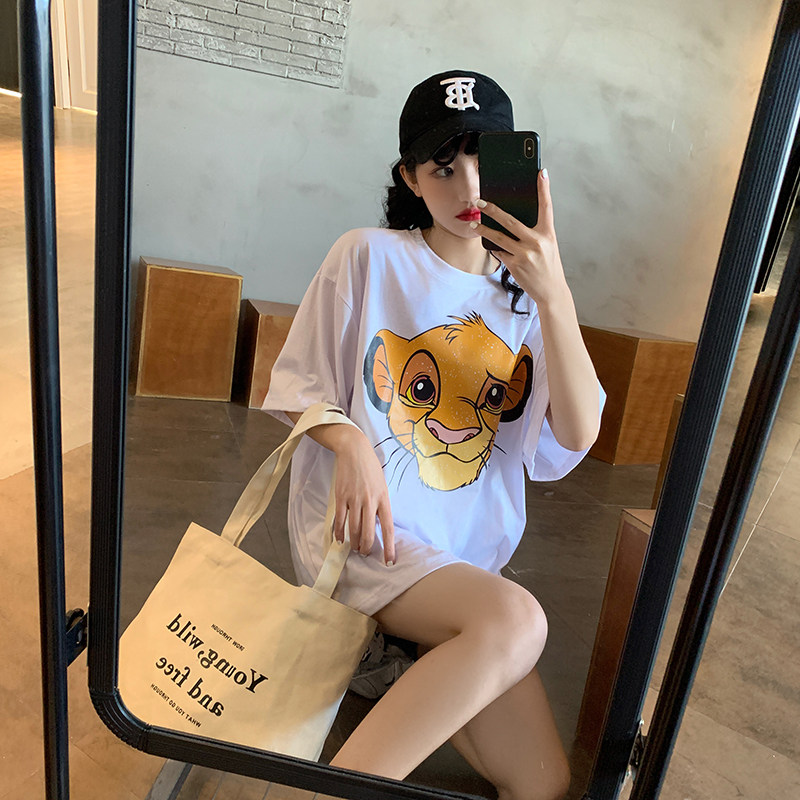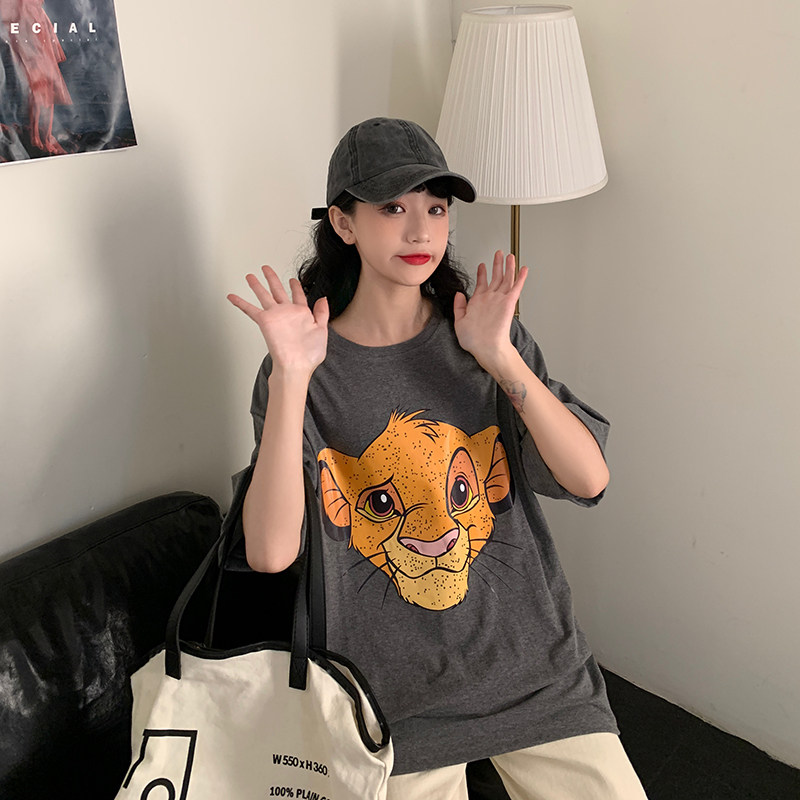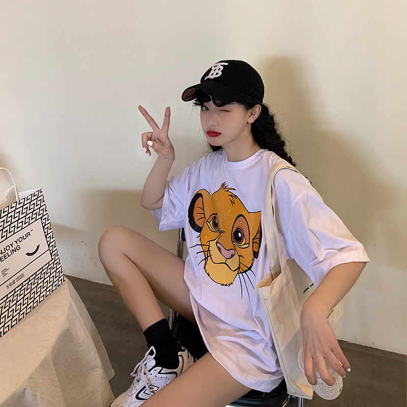 Short sleeve top summer thin 2021 New Simba Lion King design sense niche vintageT shirt women loose