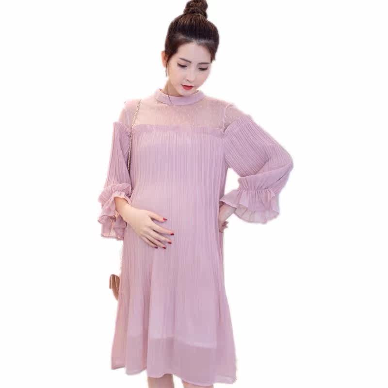 Pregnant Woman Snowspun Ocean Dress Summer Fashion style Damp Spicy Mother Personality Gestational Woman dress Han version 100 Pleated Skirt Fairy Fan Xia