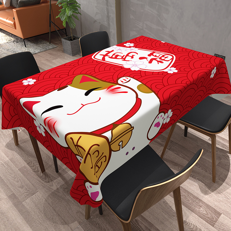 Japanese-style lucky cat tablecloth waterproof dining art tea table cloth table net red living room ins stall cloth mahjong table cover cloth