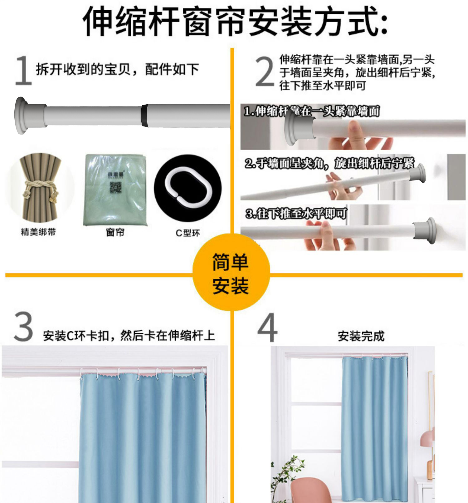 Curtain free punching installation curtain blackout door curtain partition curtain bathroom curtain fabric door curtain partition curtain windproof