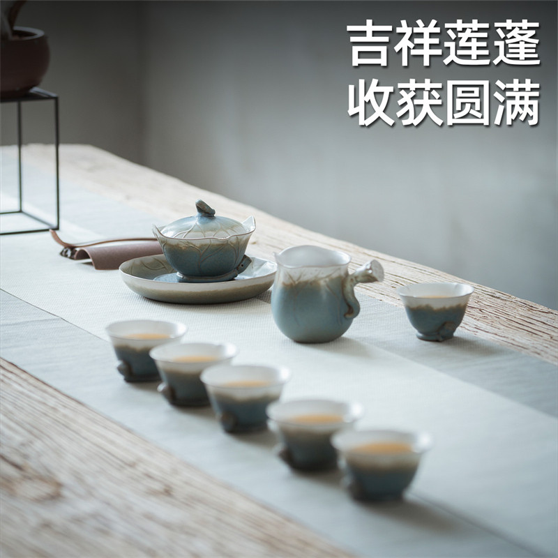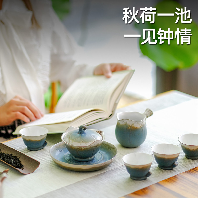 Wanqiantang ceramic kung fu tea set lotus gift box set assembly living room household cover bowl teapot autumn lotus one pool 02