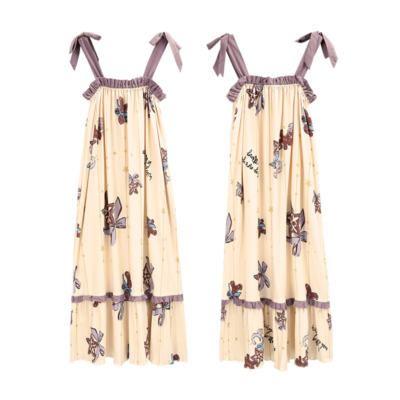 Very fairy sling night dress women can wear a long cotton thin summer pajamas sexy and cute home clothes
