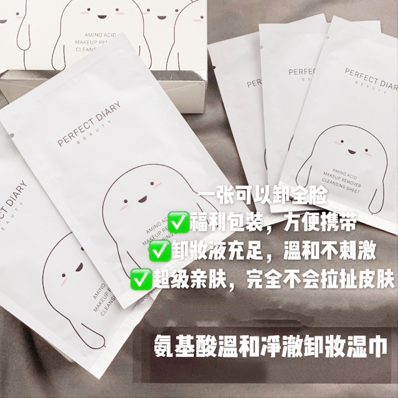 Perfect Diary White Fatty Amino Acid Makeup Remover Wet Wipes Female Face Gentle Deep Cleansing Single-piece Disposable