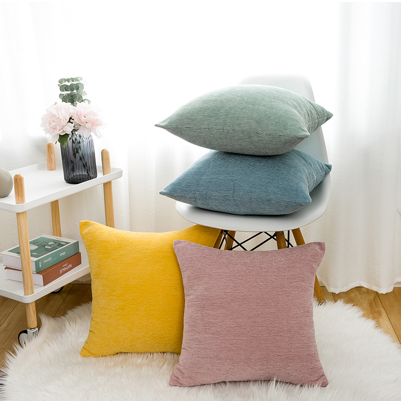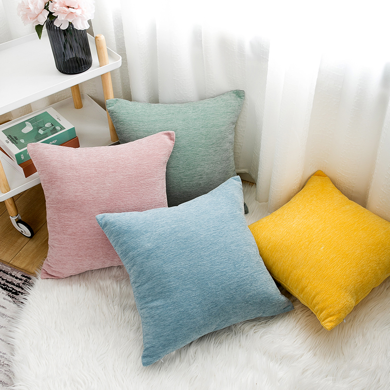 Solid color padded chenille pillow colorful candy color fabric cushion cover with core office car bedroom bag