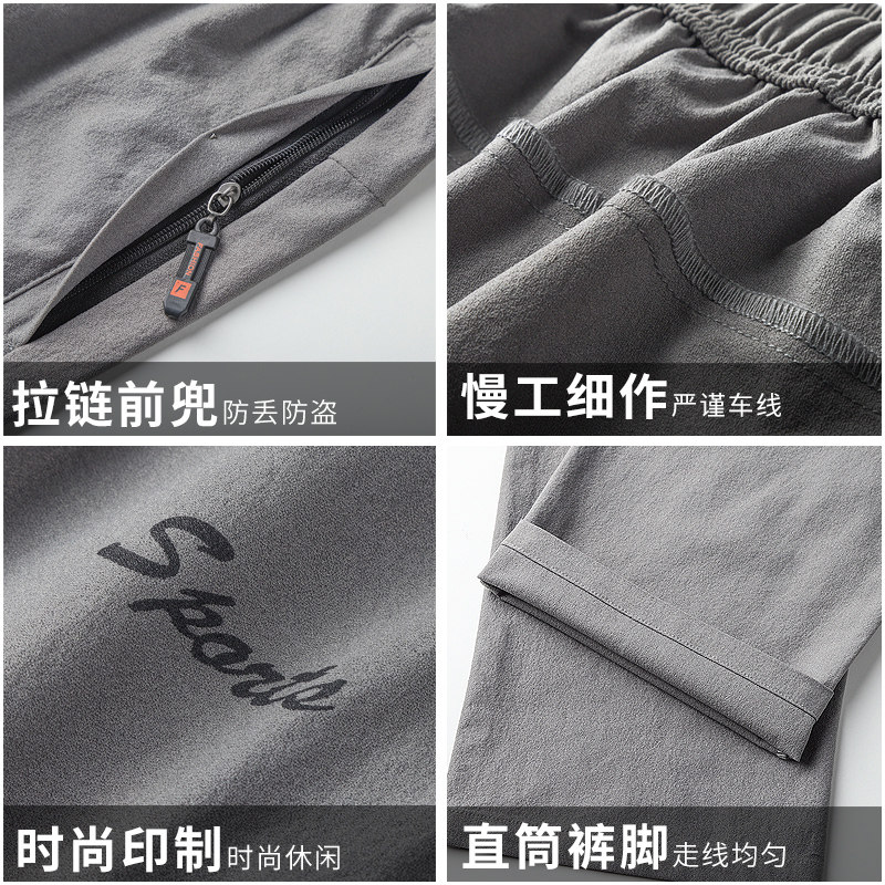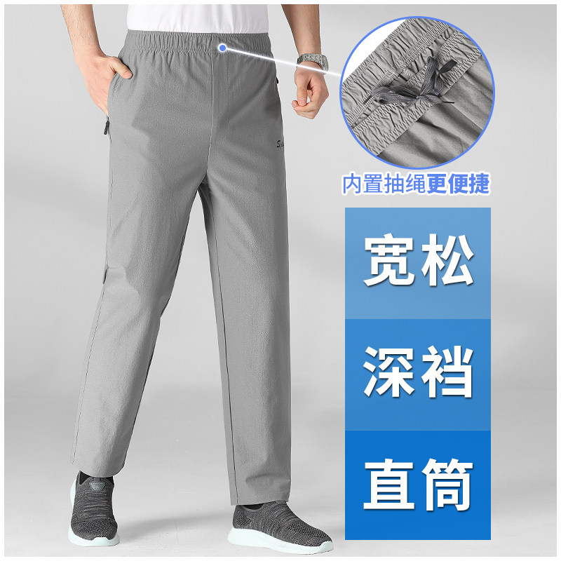 Summer men's thin ice silk pants dad summer elastic waist trousers loose middle-aged and elderly casual pants elderly men's pants