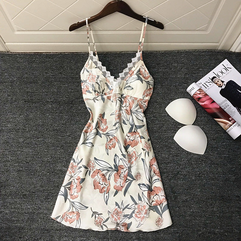 New with chest cushion Sexy ice Silk Sleeping Woman Summer Dew Back Lace Hollowed-out Seductive Harness Pyjamas Pyjamas