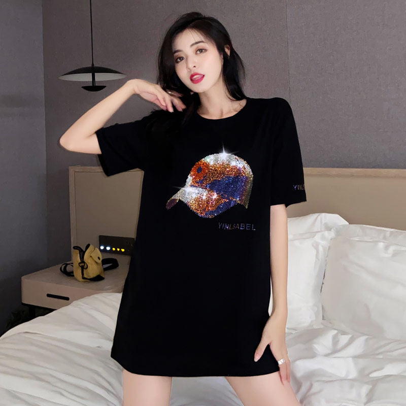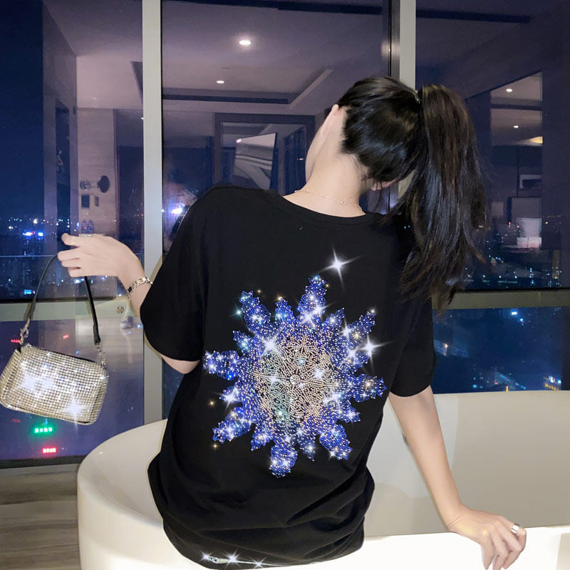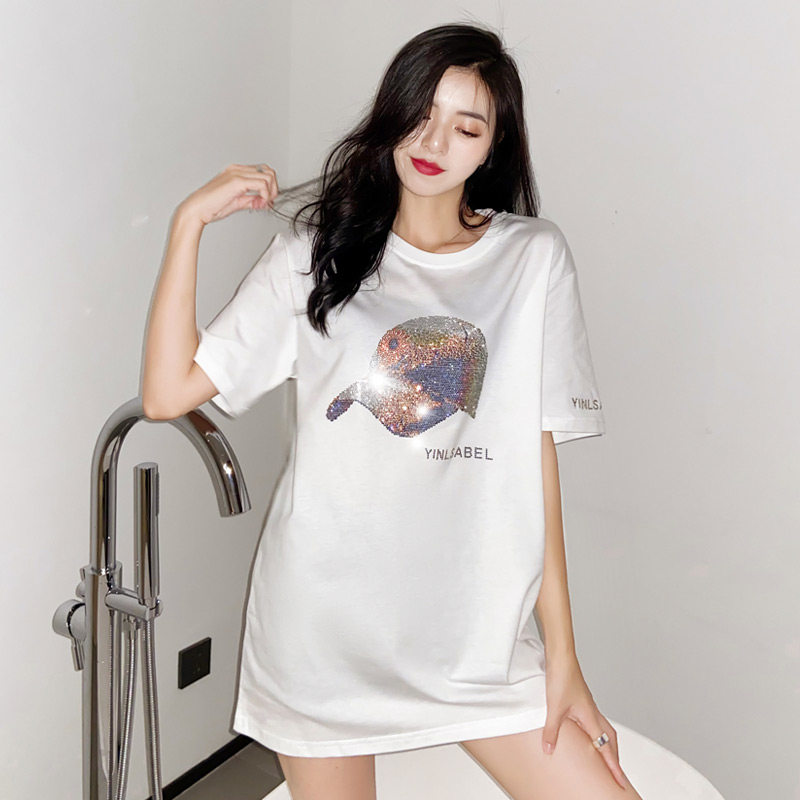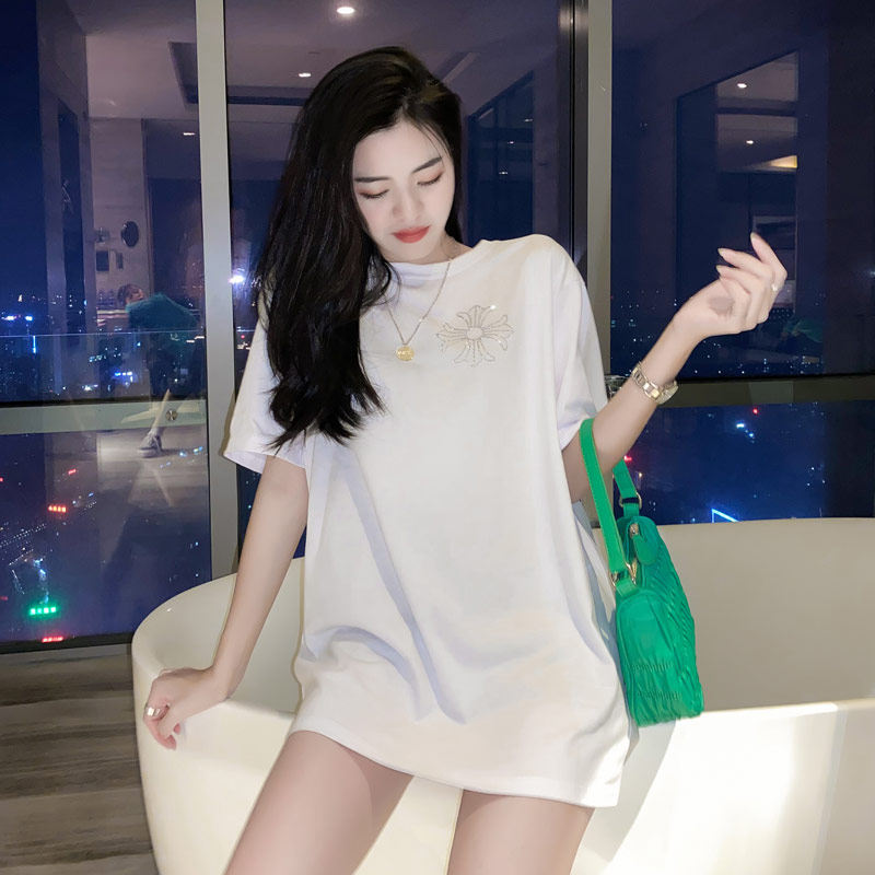 Stock of Euro Grand edition T-shirt Female short sleeve Chauded blouses Summer new ins Chaoing with medium long version Heavy work bronzed t-shirt