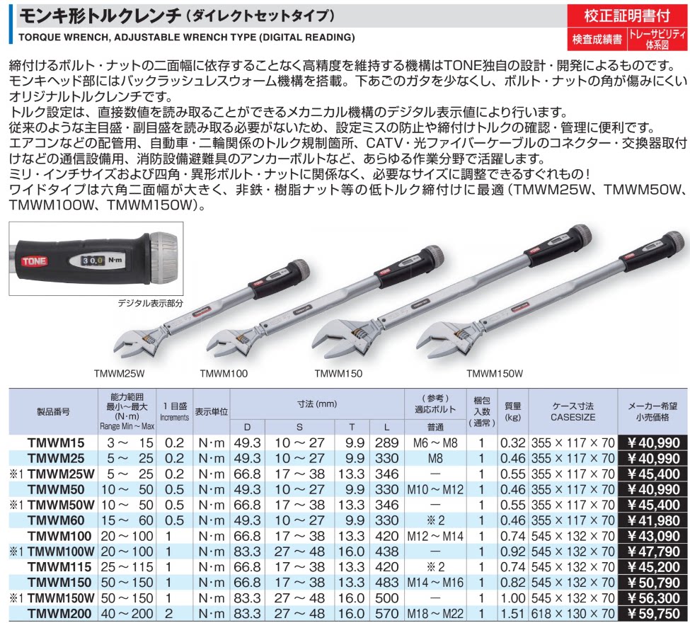 TMWM15(3-15N)TMWM25(5-25N)TMWM25W(5-25N)TMWM50(10-50N)TMWM50
