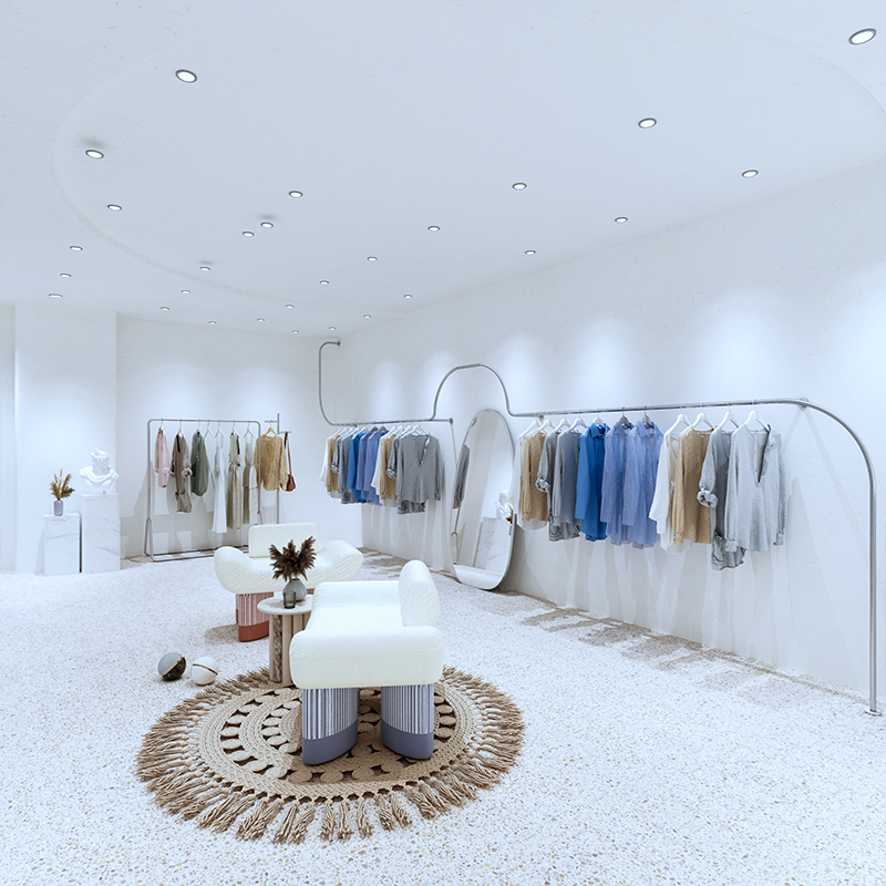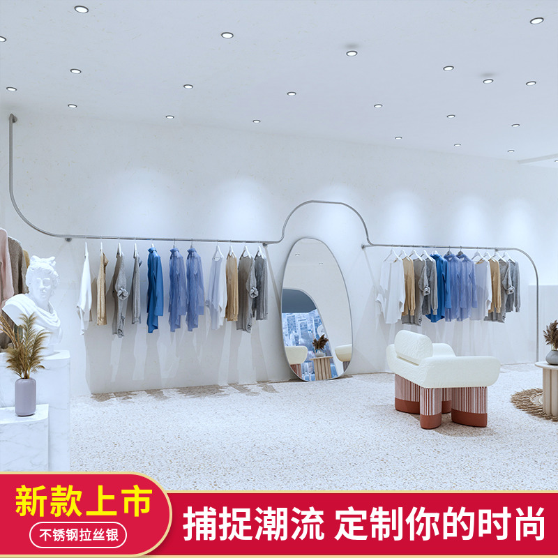 Clothing Shop Customised Upper Wall Hanging Show Shelf Side Hanging Shelf Men And Women Clothes Wall Hangers Silver stainless steel frame