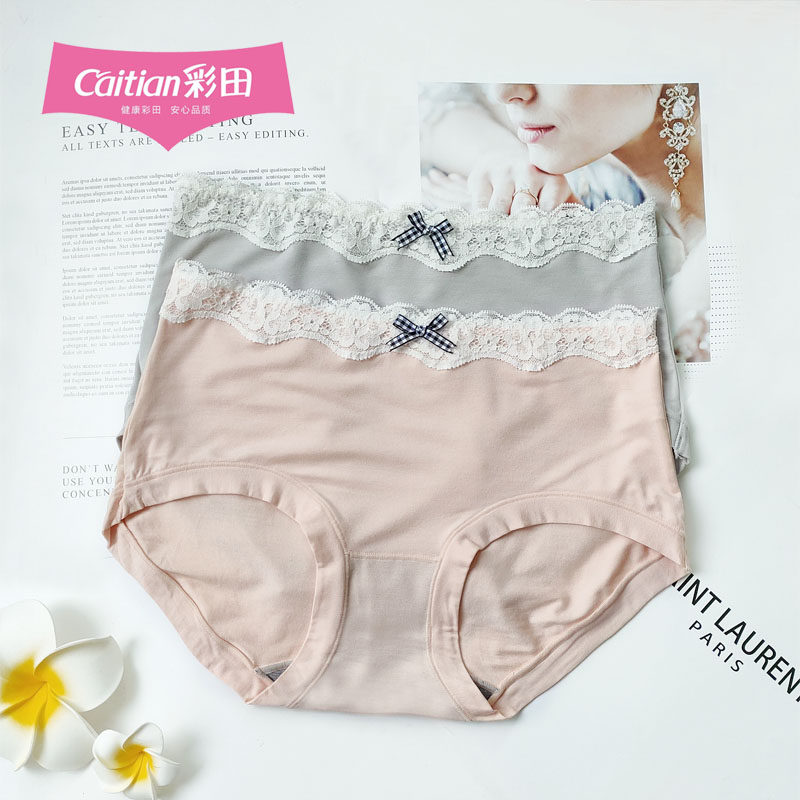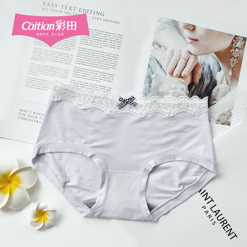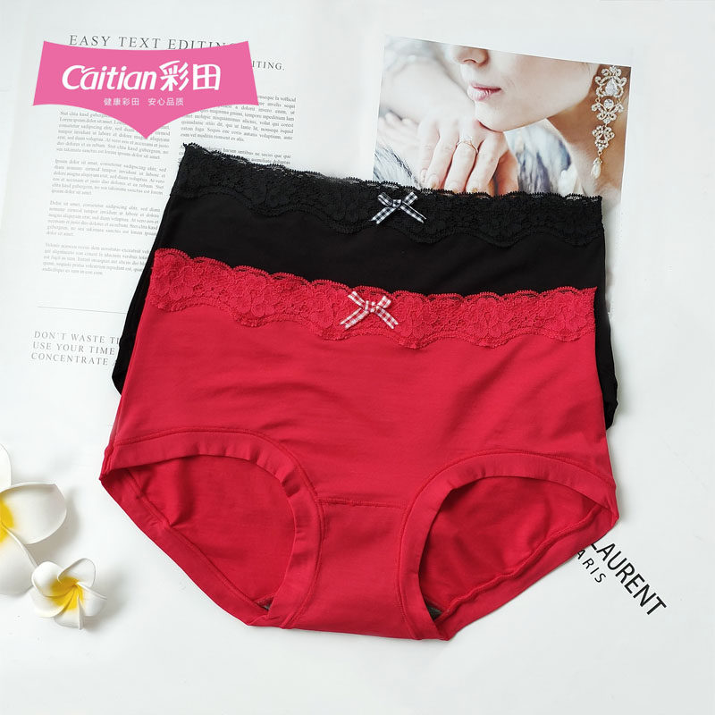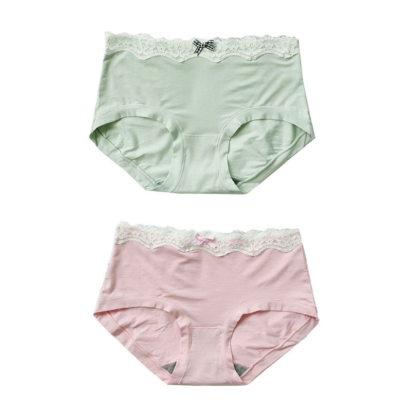Color Field Briefs Women Sweet And Soft Lace Waist Side Modai Fabric Graphene Conservation Crotch Bottom Middle Waist Flat Corner