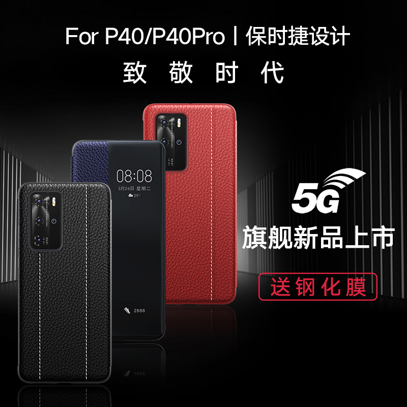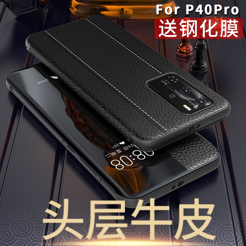 Applicable Huawei P40pro mobile phone protection shell genuine leather clamshell type p40 intelligent leather cover limited edition p30 protective sleeve p40p full-pack Qu screen anti-fall huawei por business upscale men and women p40