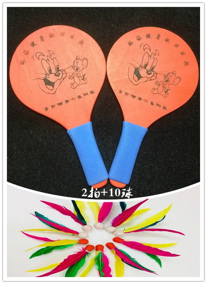 (2 beats + 10 balls) color cartoon board badminton pieces sponge handle eco-friendly cartoon board feather racket adults and children