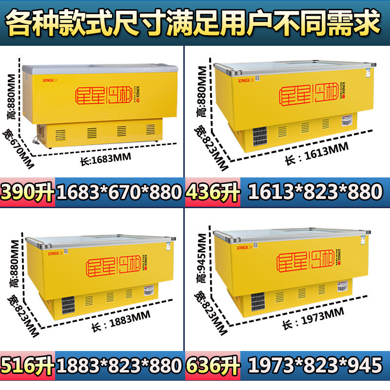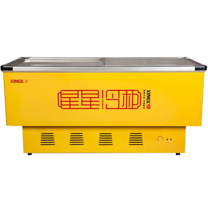 Stars Freezer Commercial Large Capacity Island Cabinet Horizontal Refrigerated Freezer Presentation Cabinet Seafood Dry Goods Frozen Fresh Refrigerator