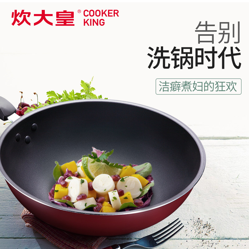Cook emperor non-stick wok wok Household less fume wok thickened induction cooker Gas stove Universal pan