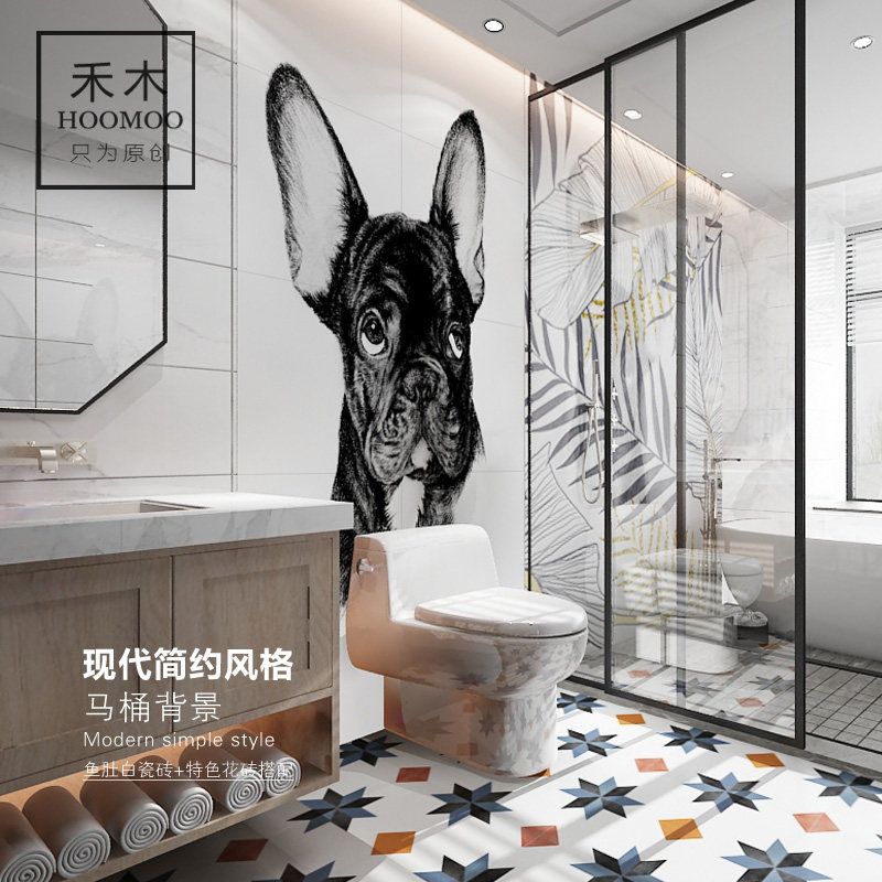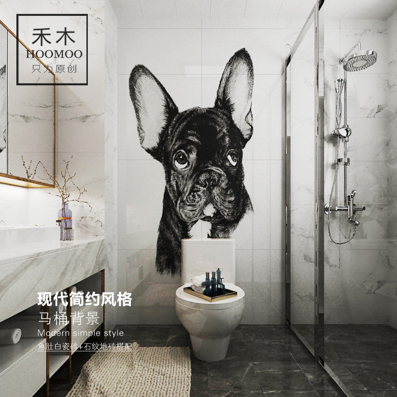 Personality Bathroom Toilet Tile Background Wall Dressing Room Modern Minima Black & White Cat Dog Pattern Custom Balcony Wall Brick