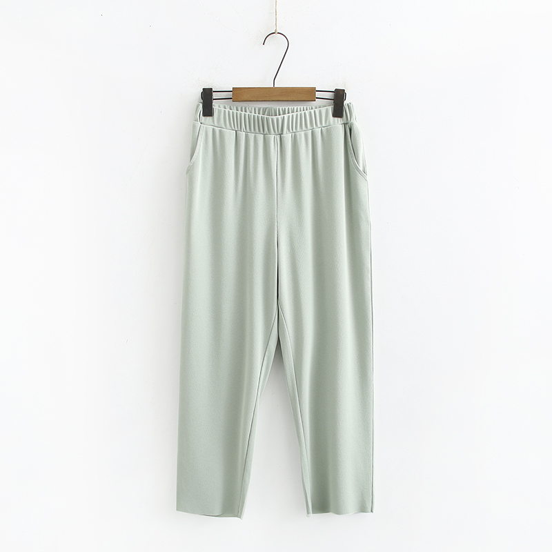In summer, the new middle - aged elderly woman fat mother 200 pounds can wear ice wire tight waist nine points casual pants