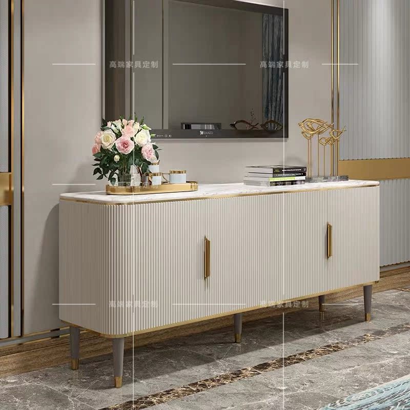 Light luxury post-modern solid wood TV cabinet Hong Kong-style marble porch coffee table combination simple American porch decorative cabinet