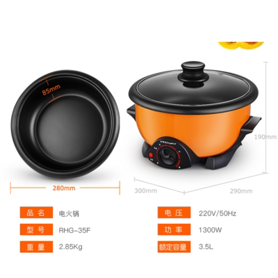 Rongshida multi-function electric hot pot two-piece student dormitory electric cooking pot household cooking one electric hot pot 2 people 4