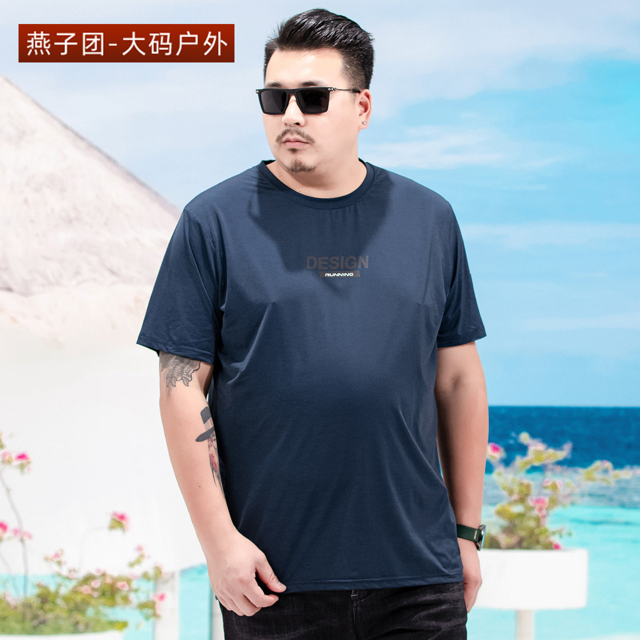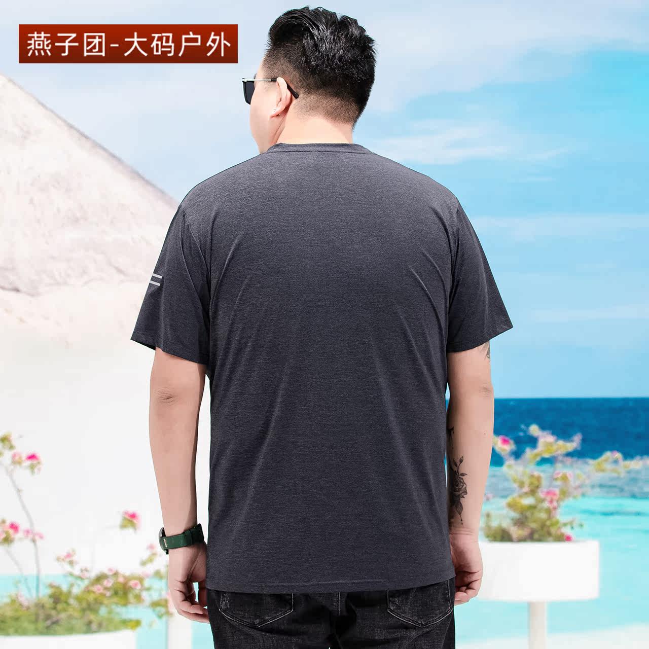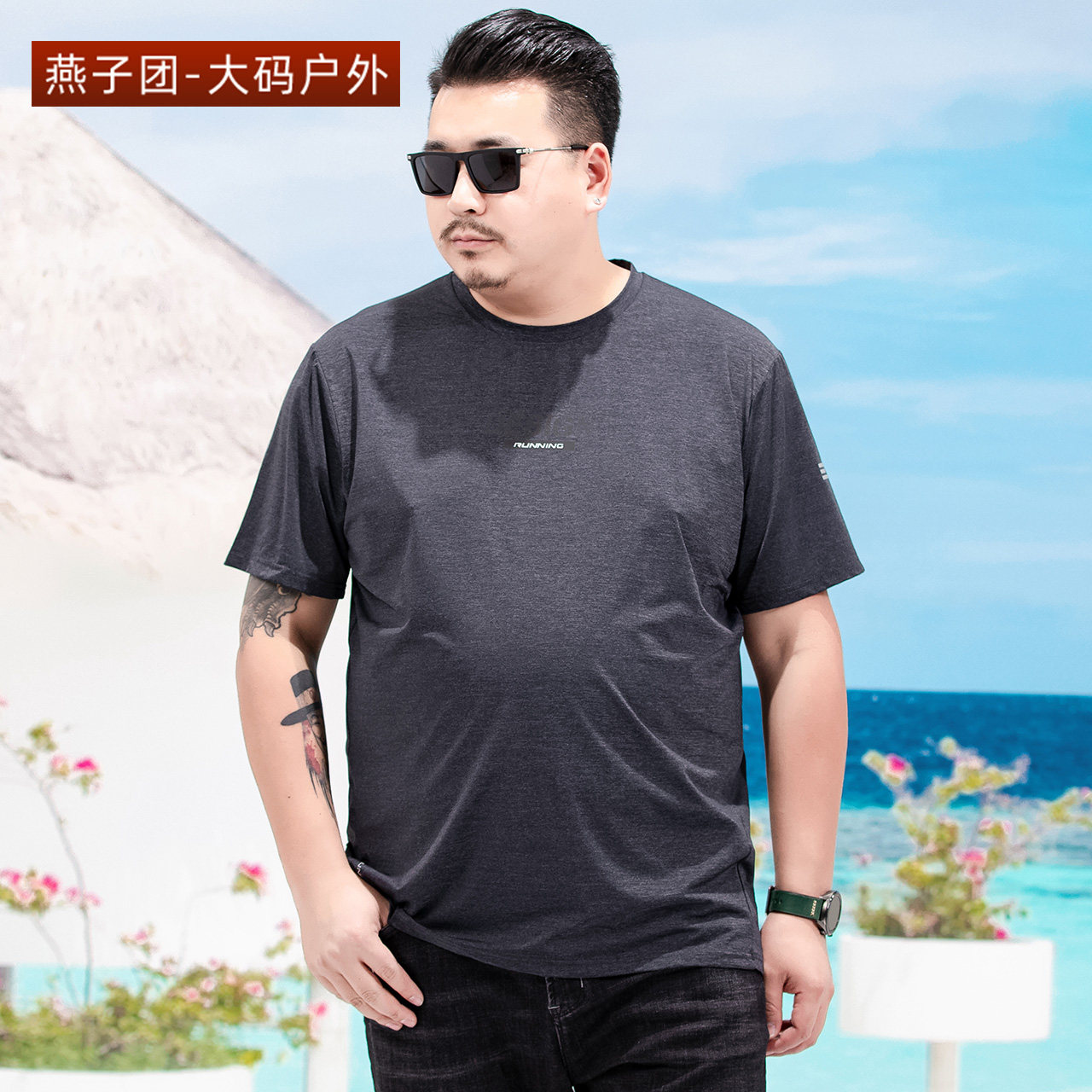 Fat man summer loose leisure outdoor weight and large-scale plus round collar dry fitness in old age coat tide T-shirt