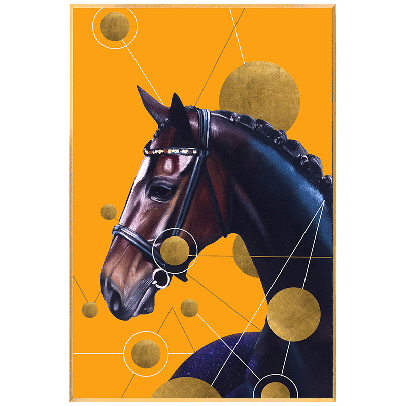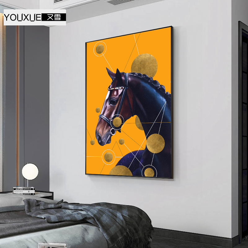 Modern porch decorative painting light luxury soft decoration mural orange crystal porcelain dining room horse oil painting Nordic style living room hanging painting