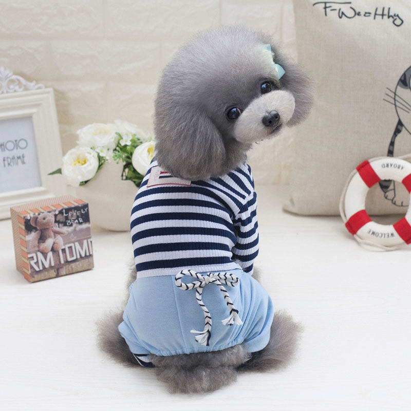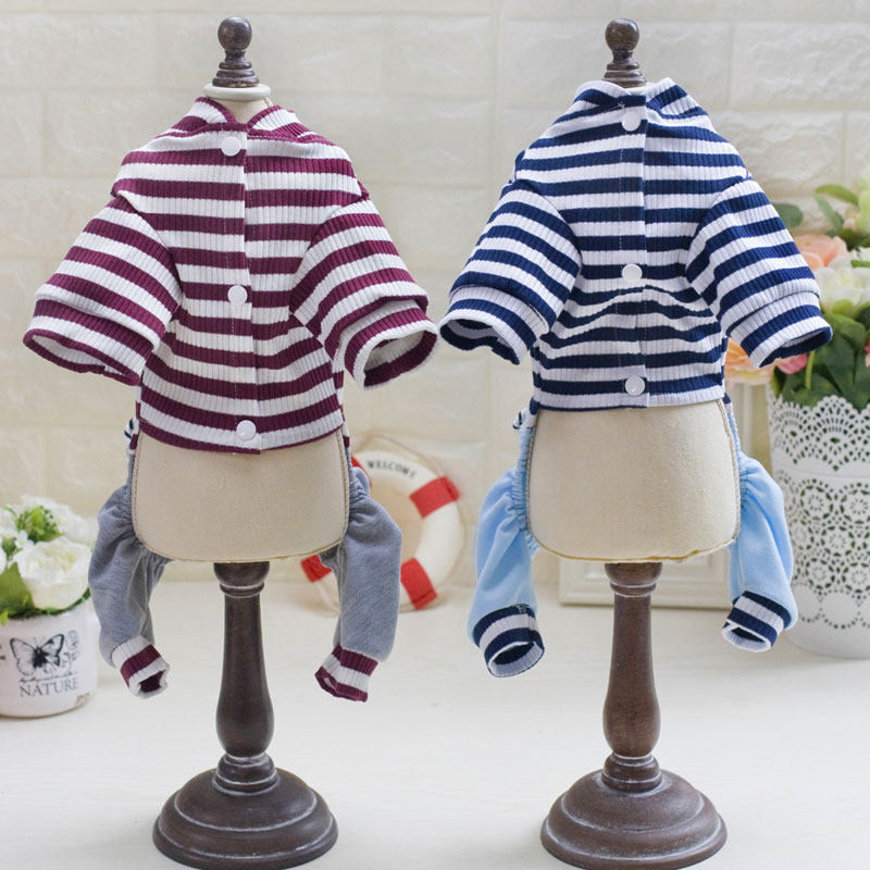 Dog clothes summer thin four-legged belly protection suit dustproof and dirty spring and summer small dog chain stripe teddy