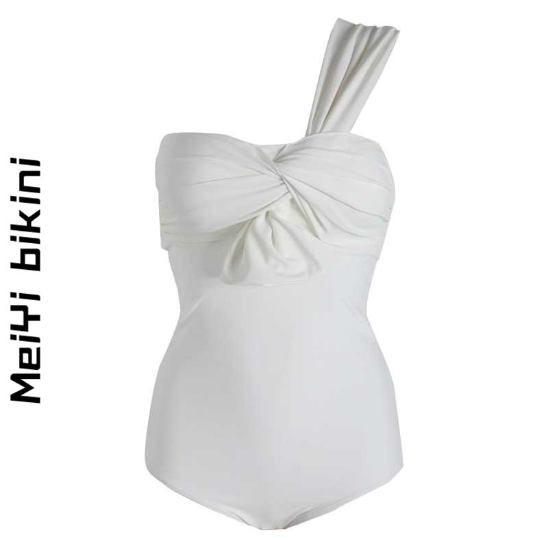 MeiYi black white single shoulder sexy one-piece swimsuit woman covered with slim fit for spa swimsuit
