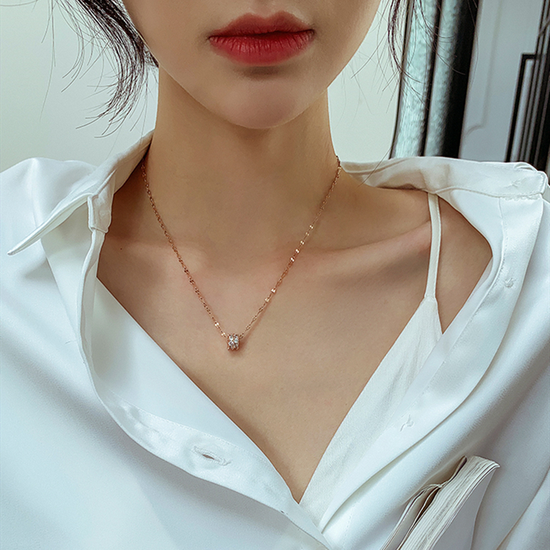Diamond-encrusted small brute waist necklace female tide light luxury collarbone chain high-grade sense sterling silver does not fade simple cold neck chain