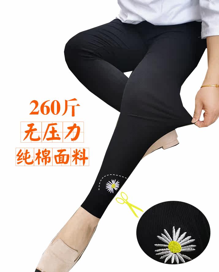 Large size small daisy inside pants female 250 pounds outside wearing spring and summer threaded nine-point pants gray net red pants thin