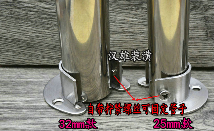 Outdoor thickened 304 stainless steel flange seat wardrobe hanging rod fixed bracket bracket bracket base accessories 25 32mm