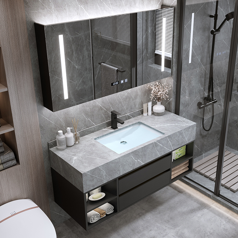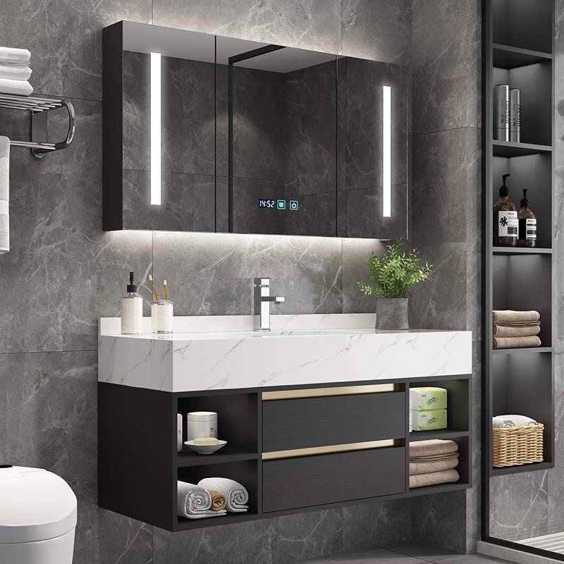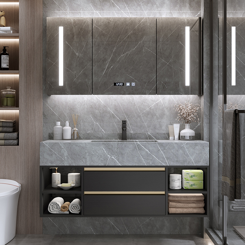 Light Extravagant Smart Bath Room Cabinet Combination Brief Modern Hand Wash Washbasin Make-up Room Rock Plate Wash Table Mirror Cabinet Suit