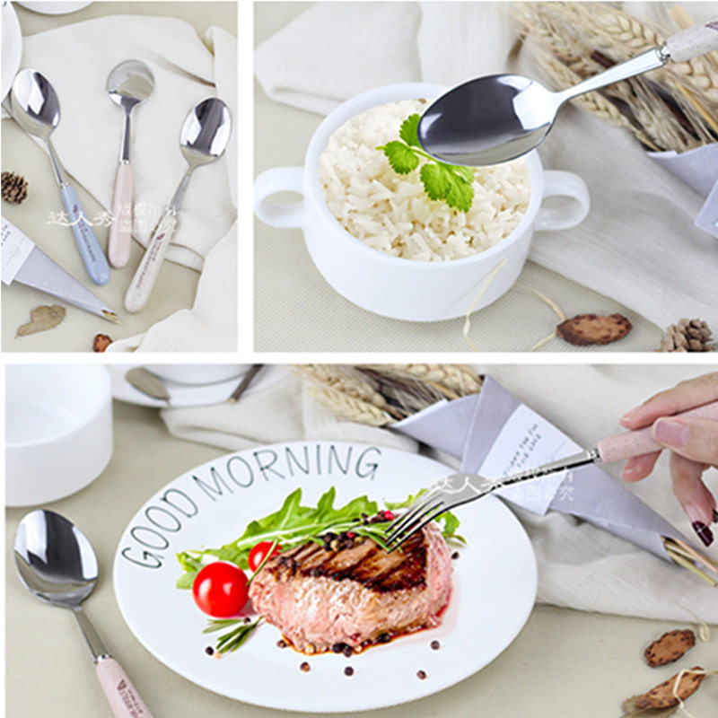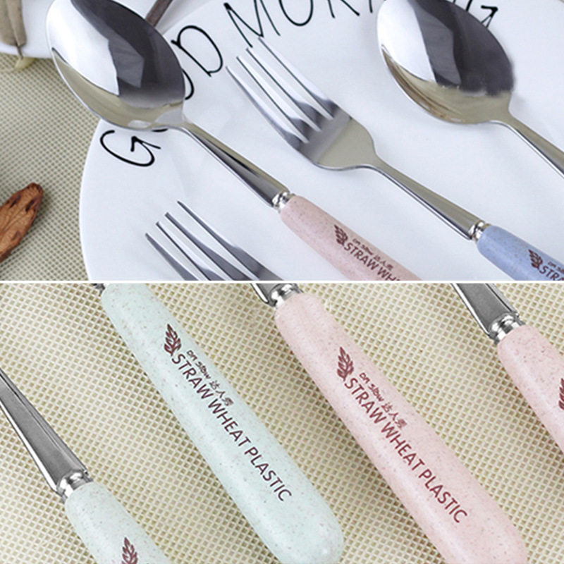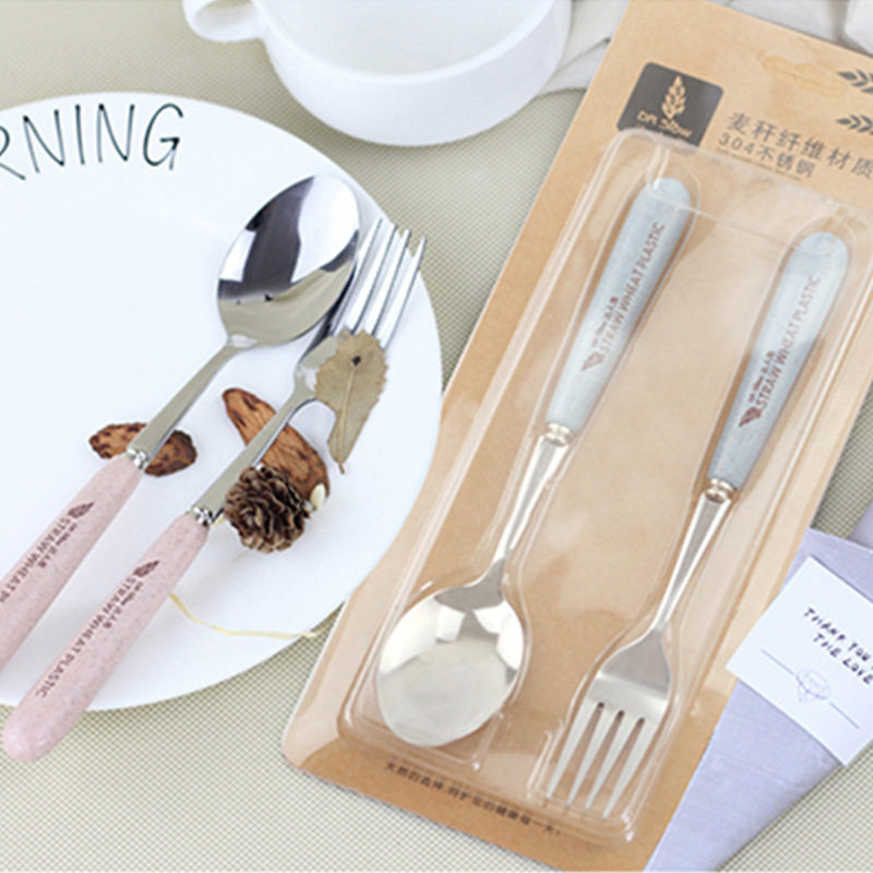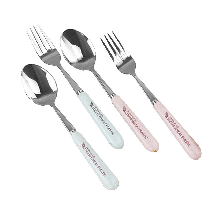 Wheat straw tableware two pieces of spoon fork set portable stainless steel tableware household fork spoon set