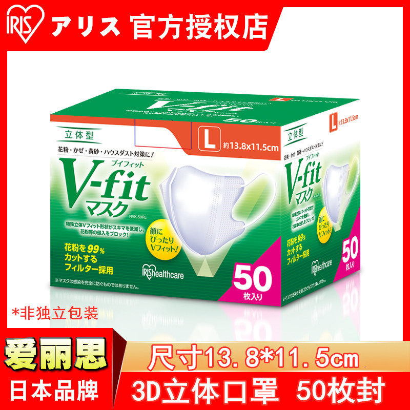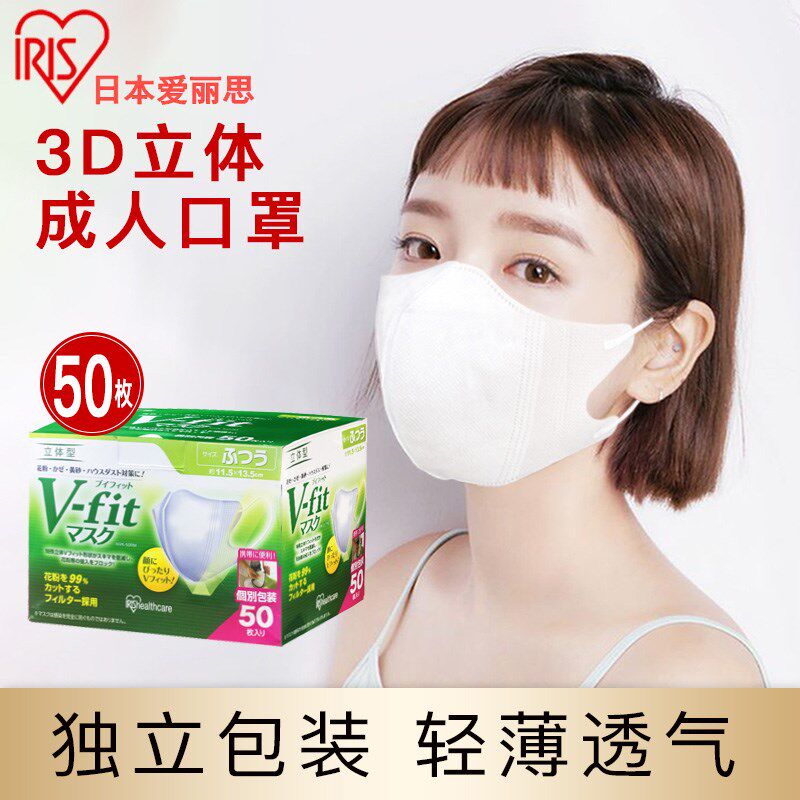 Japan IRIS disposable flat mask three-layer protection white ultra-thin men's and women's three-dimensional independent packaging breathable