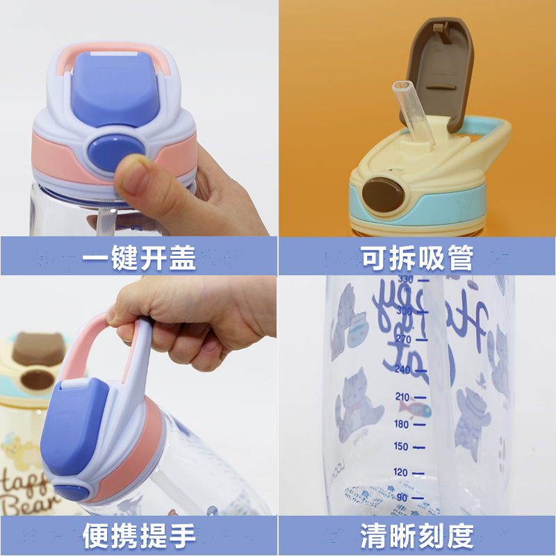 Lock and lock children's straw portable water cup with scale kindergarten silicone sports leak-proof baby cute cup