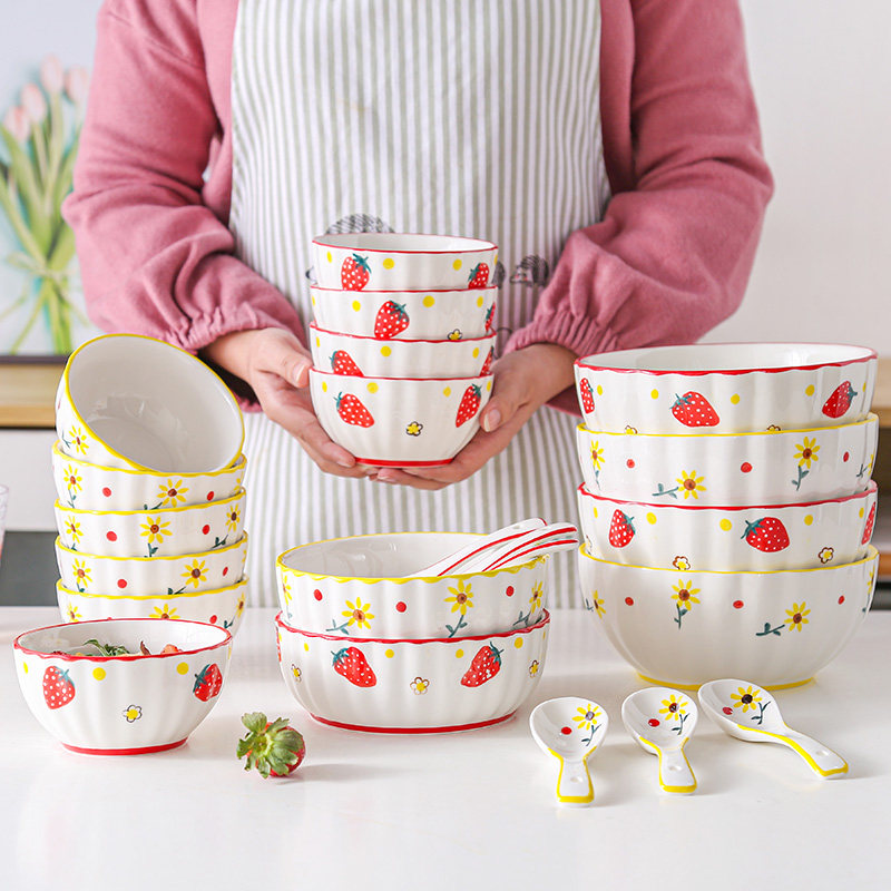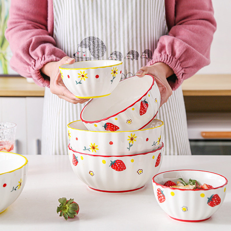 Hand Painted Nets Red Ins Cute Dishes Suit Rice Bowls Home Salad Bowls Sweet bowls Bowls Single Noodle Bowl