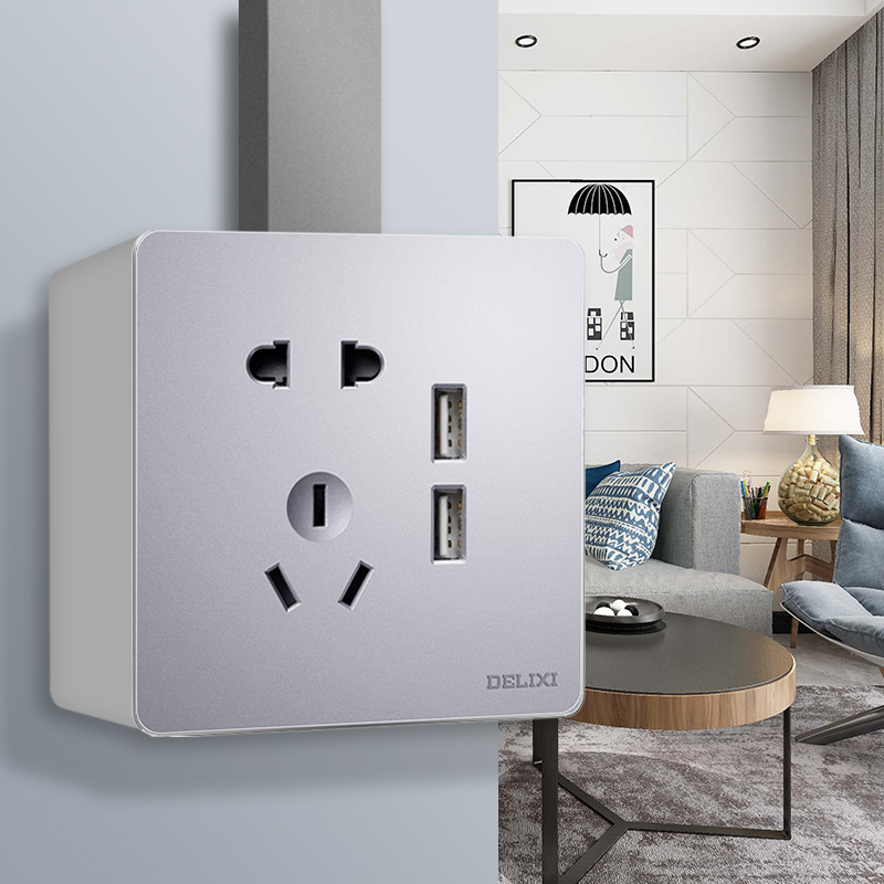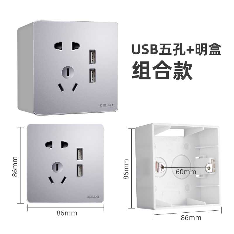 Delixi 5 five holes with usb surface mounted socket panel wall household silver gray charging 86 type smart fast charging