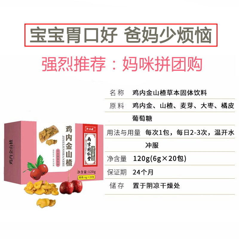 Nanjing Tongrentang Chicken Inner Golden Hawthorn Grain Powder Slices Young Children Child Conditioning Invigorating and Nourishing Stomach and Spleen Tea Digesting
