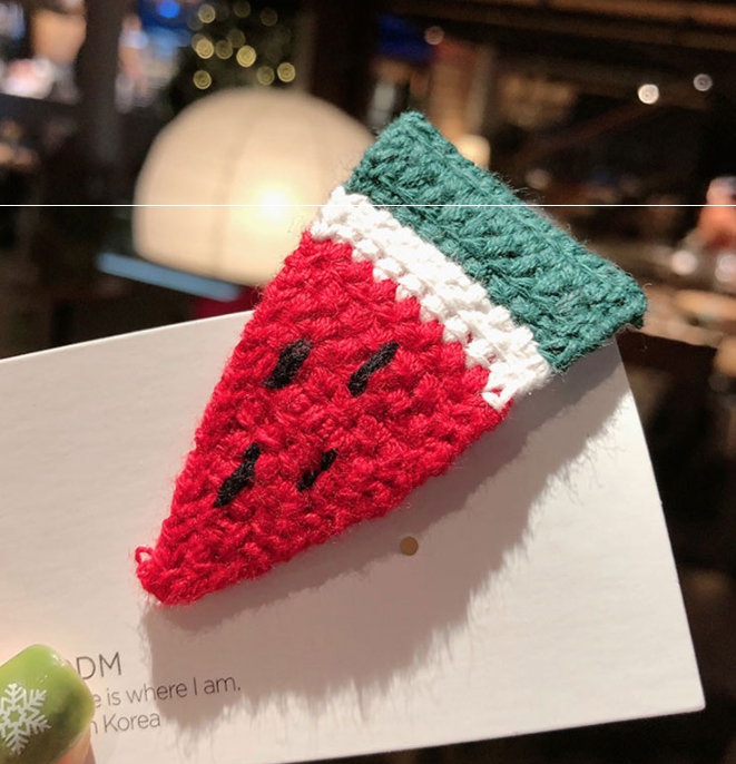 Sweet Japanese cute fruit knitted avocado wool hairclip simple watermelon strawberry hairclip broken hairclip