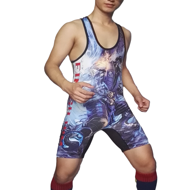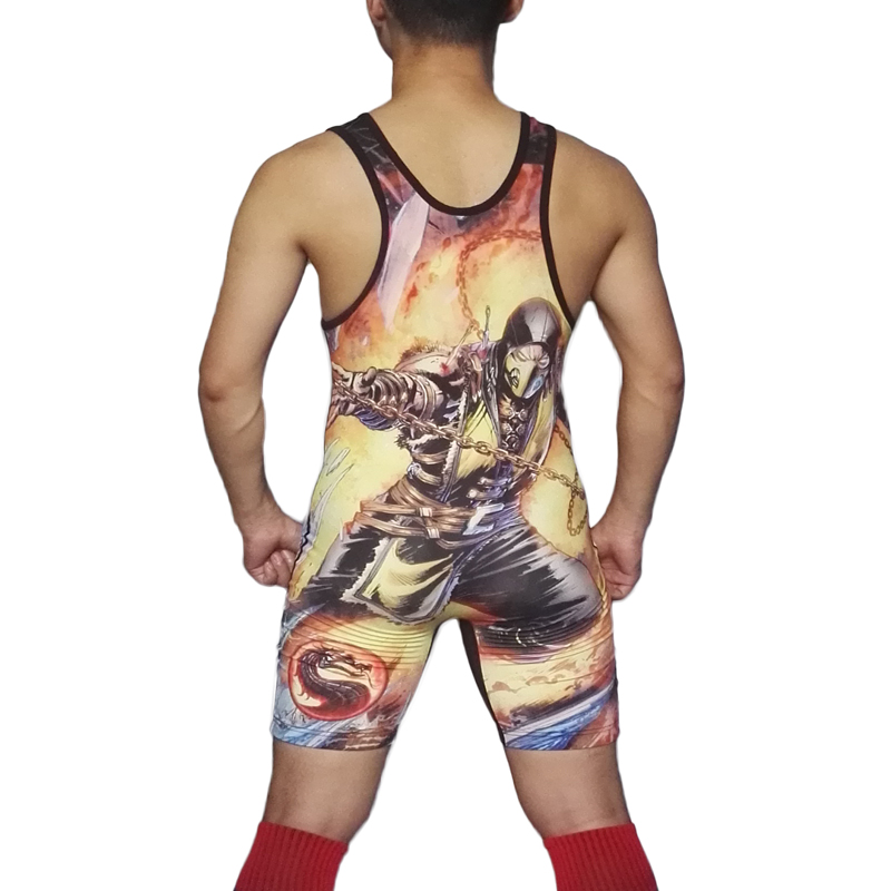 Badiace Ice and Fire Siamese Weightlifting Dragon Stamp Men's Wrestling Suit Men's Jumpsuit Swimsuit