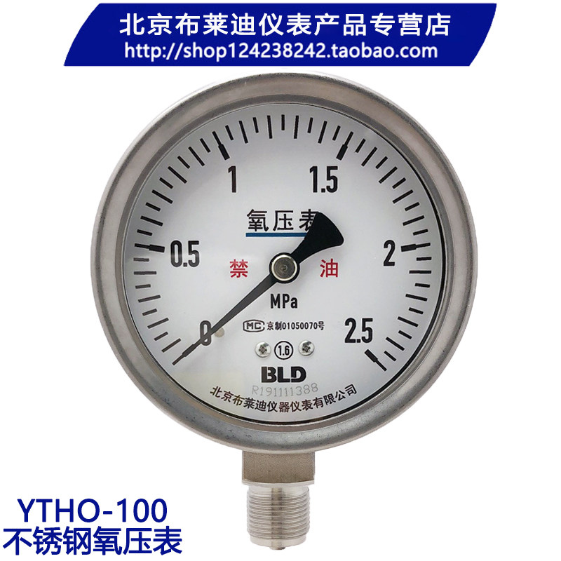 Beijing Brady oxygen pressure gauge YO-100 stainless steel oxygen pressure meter YTHO-100 Forbidden Oil Meter
