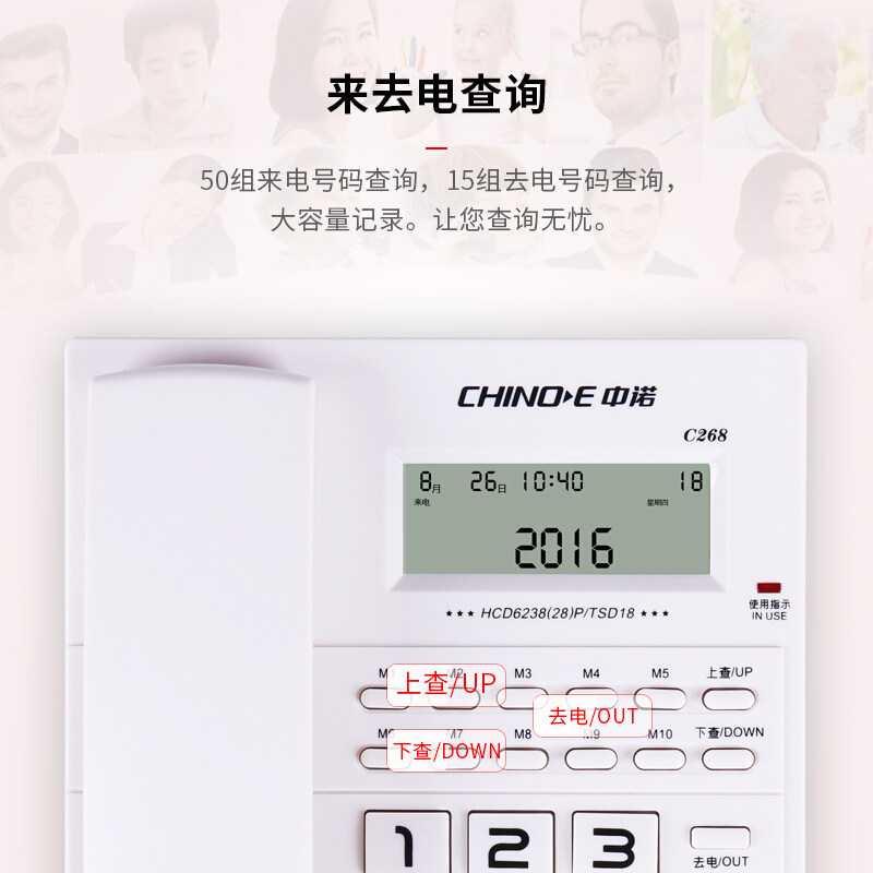 China Noor C268 telephone home fixed seat machine office Phone free of battery to electric display of wire sitting machine