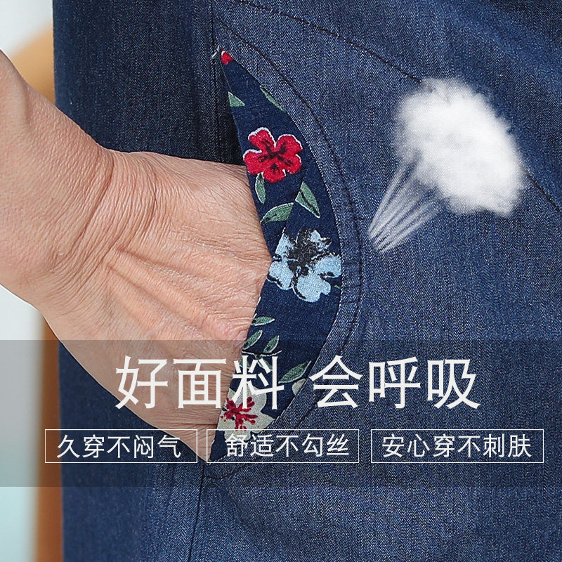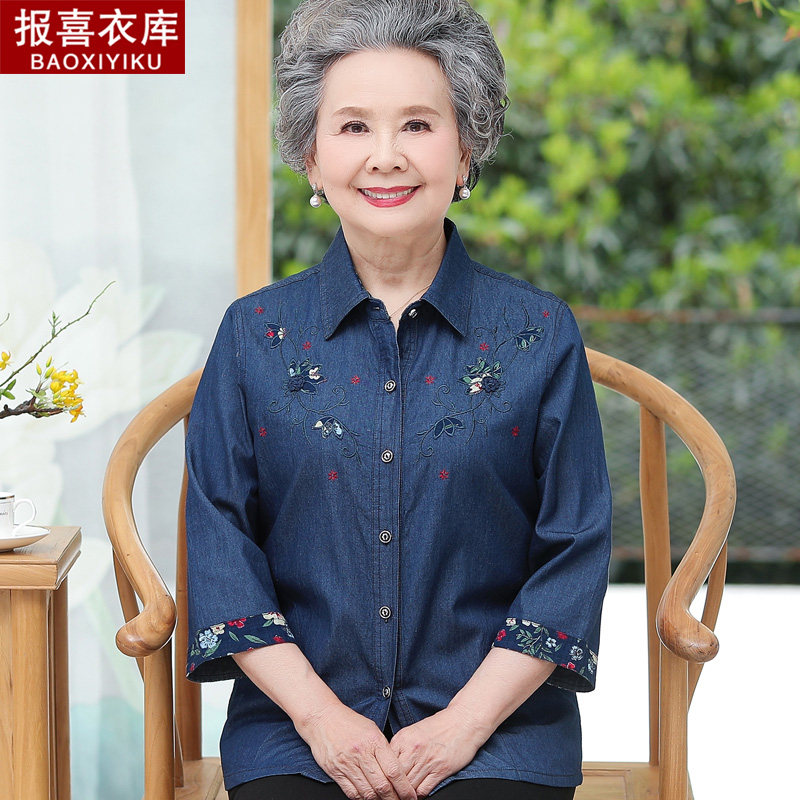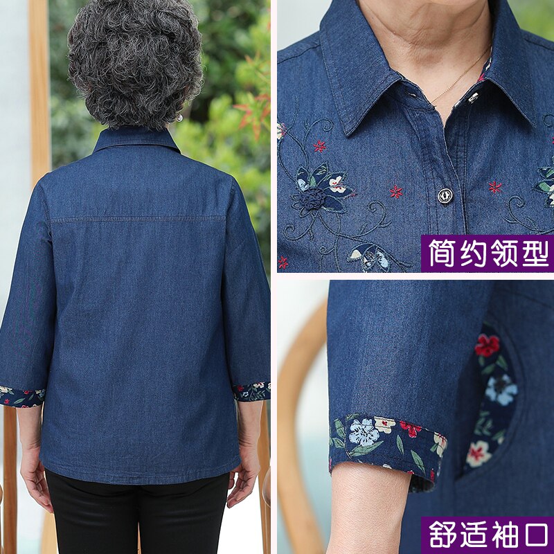 Mother Pure Cotton Shirt Mid-Aged Female Denim Jacket Grandma Autumn Clothing Elderly Wife 50% Sleeve Shirt Thin
